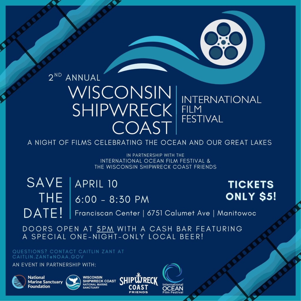 Shipwreck Coast Friends is thrilled to work with our partners to bring eight international and regional films to our communities – helping to drive awareness and conservation of our Great Lakes and Ocean. Join us as we kick off the 2nd Annual Wisconsin Shipwreck Coast International Film Festival in Manitowoc!