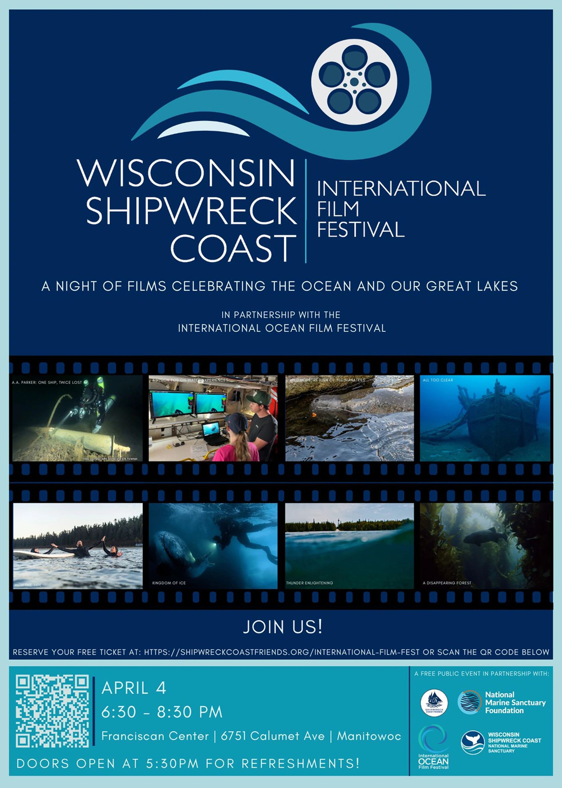 Shipwreck Coast Friends is thrilled to work with our partners to bring eight international and regional films to our communities – helping to drive awareness and conservation of our Great Lakes and Ocean. Join us as we kick off the First Annual Wisconsin Shipwreck Coast International Film Festival in Manitowoc!